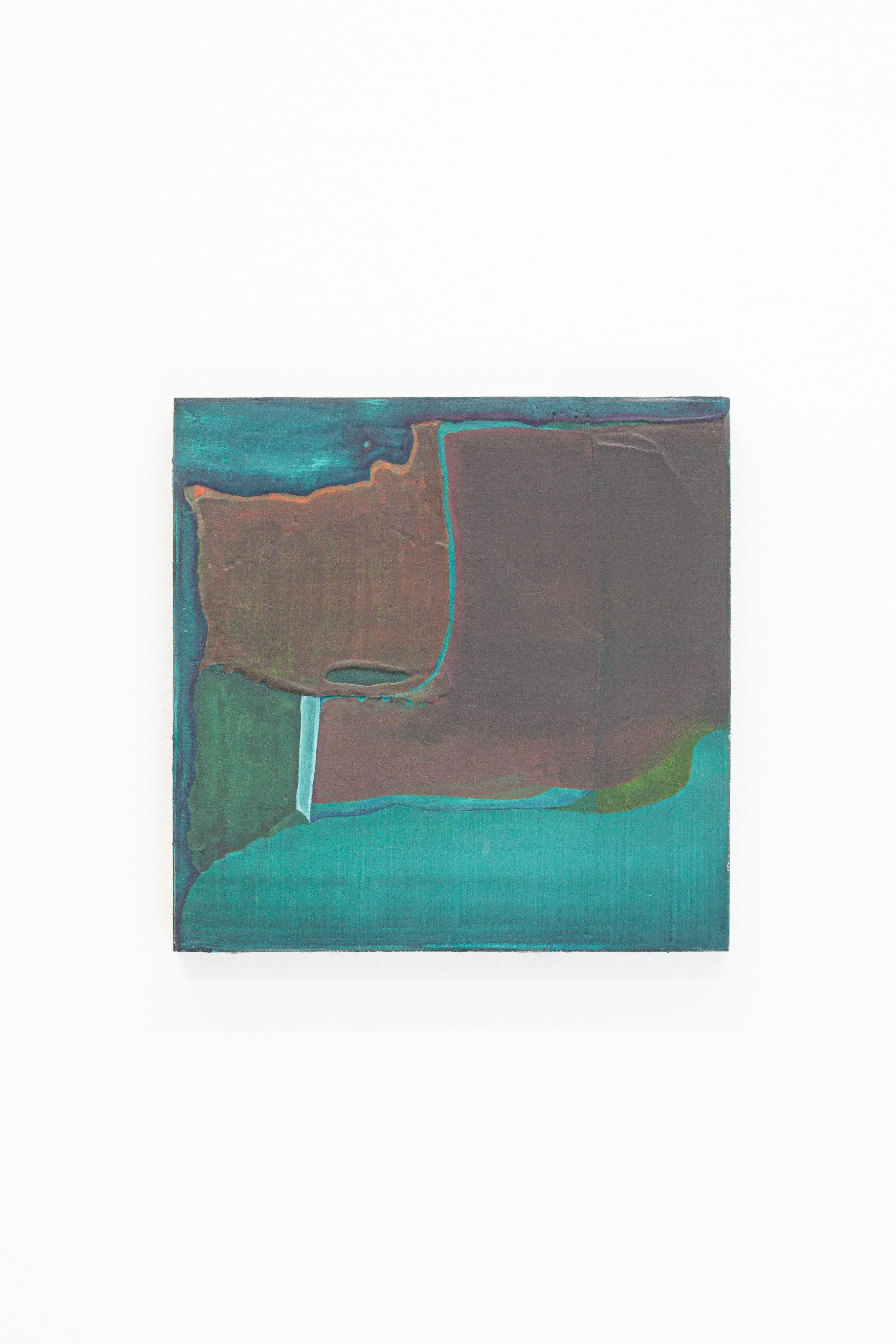 Untitled 148, 2022. Watercolour, ink, gouache, plaster and linen on wood. 200 x 200 mm.