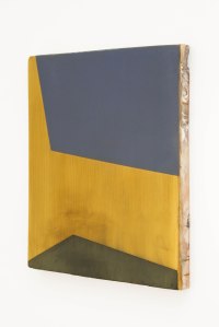 Untitled 97, 2018. Coffee, jet ink, mungyo pastels, acrylic and plaster on found wood. 360 mm x 305 mm.